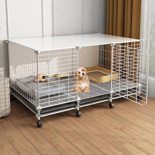 Haustierkiste, Hundezwinger, Käfige für Hunde im Innenbereich, Hochleistungs -Haustier -Cawith -Räder und abnehmbares Tablett/Weiß KeYJ