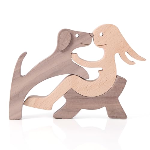 BOXOB 3 Stück Hund Familie Figuren aus Holz, Hund Andenken Geschenke Holz Skulptur Haustier Statuen für Paar Zuhause Dekor Verlust