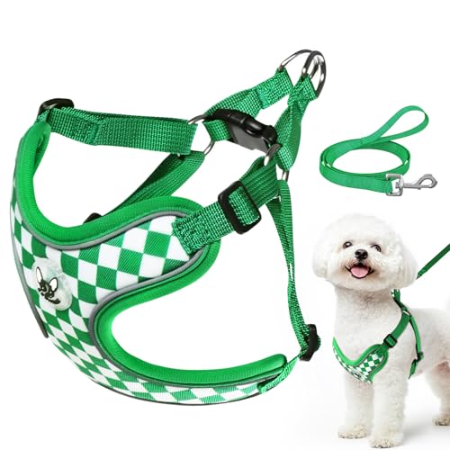 Cawjug Hundegeschirr und Leine Set, Weiches Einstellbares Reflektierendes Schritt-in-Westengeschirr für Welpen Extra-Klein Mittelgroße Hunde, Verstellbares Welpengeschirr (Grün, S)