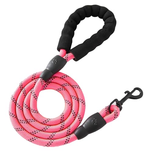 GoesWell Strapazierfähige und leichte Hundeleine mit weichen Schaumstoffgriffen und reflektierenden Streifen, geeignet für kleine, mittelgroße und große Hunde. (Pink, 150 cm x 1,2 cm)