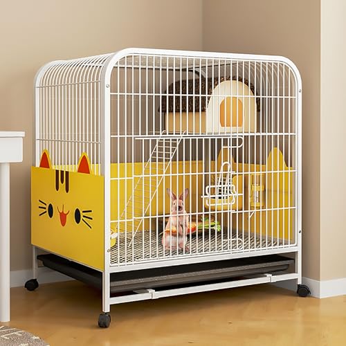Kaninchenkäfig, Indoor-Stall mit geschlossenem Loungebereich, für Frettchen, Chinchilla, Igel, Kaninchenhaus mit Schiebewannen & Universalrad