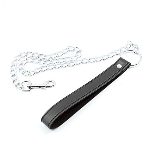 Hanyi PU Leder Leine mit Kette SM Bondage Leine Haustier Hundeleine Führungsleine, Schwarz