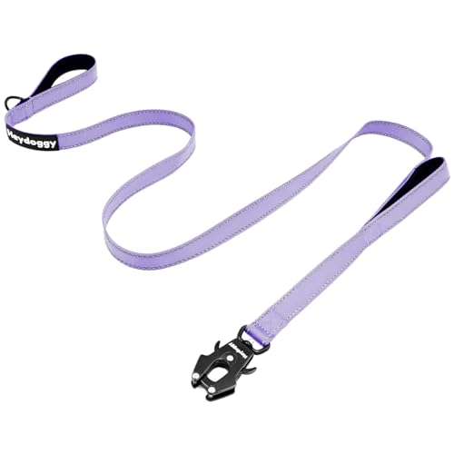 Reflektierend Hundeleine 1,8m für Große Mittlere Kleine Hund, Robust Nylon Trainingsleine mit Zwei Griff & Auto Sperre Karabiner, Anti-Zug Walken Sicherheit Kontrolle Führleine Lila 6ft