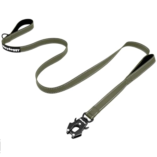 Reflektierend Hundeleine 1,5m für Große Mittlere Kleine Hund, Robust Nylon Trainingsleine mit Zwei Griff & Auto Sperre Karabiner, Anti-Zug Walken Sicherheit Kontrolle Führleine Army Grün 5ft