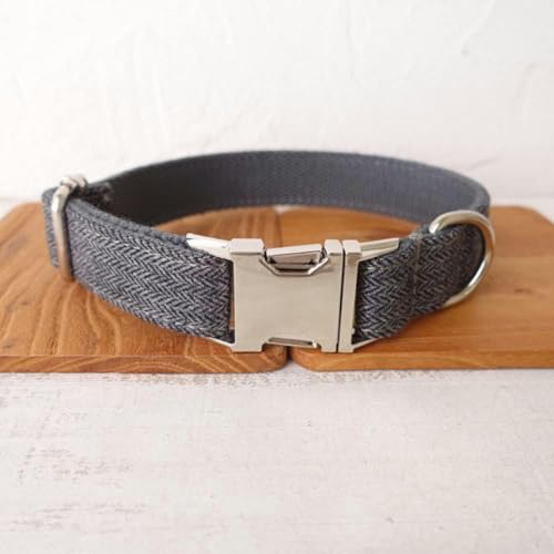 Blaues Halsband, personalisierter Baumwollqualitätsstoff für kleine, mittelgroße und große Hunde, Metallteile, Haustierzubehör, Hundeleine, M