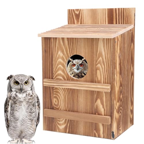 Nankoyal Eulenhaus | Holz-Eulen-Nistkästen für draußen, großes Vogelhaus, einfache Montage, kreisförmige Öffnung, handgefertigter Unterschlupf für Turmfalke, Vögel