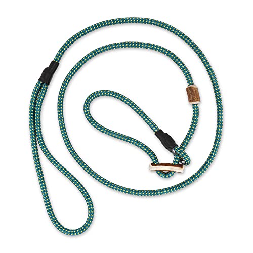 ROMNEYS Moxonleine Durham 6 mm – handgefertigte Retrieverleine & Agilityleine mit Hirschhorn-Zugstopp – Leine & Halsband in einem – Hundeleine Made in Germany (Türkis, 130 cm)