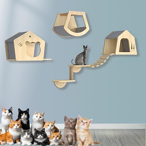 XMLYSMYS Katzentreppe Wand, Katzen Kletterwand Aus Holz Katzenmöbel Innen Wandpark, Platzsparend, für Katzenliebhaber, Zum Klettern, Schlafen, Spielen(4PCS)