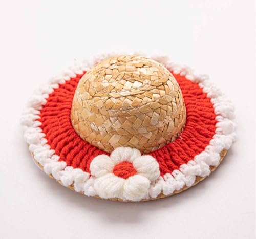 feiling Strohhut für Haustiere Sonnenhut für Katzen und Kleine Hunde Welpen Sonnenschutz Strand Mütze Urlaub Zubehör Haustier Party-Kostüm (G, L: Diameter 15cm)