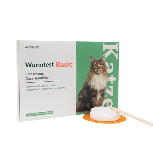 vetevo Wurmtest Katze Basic, Präziser Katzen Wurmtest auf Spulwürmer, Hakenwürmer, Peitschenwürmer & Kokzidien, Ergebnis in 12h, Für alle Katzen