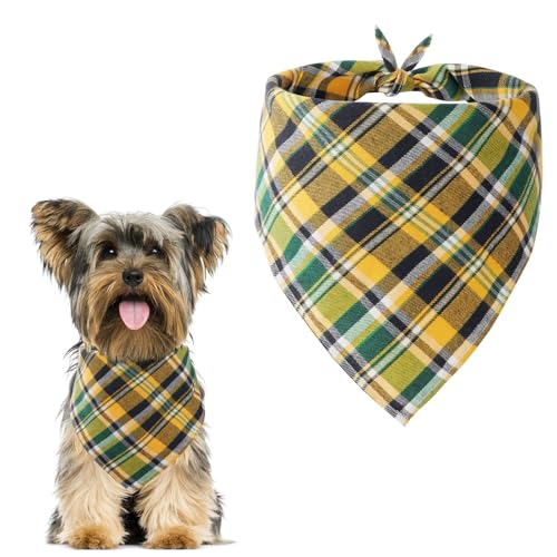 Aomig Bandana Hund Kopftücher Hunde Dreiecks Mode Halstuch Hundehalstuch klassisches Plaid Dreieckstuch Waschbare Hundehalstücher Geburtstag Hund für Kleine Mittel Große Hunde Katzen 50x50x70cm (Grün)