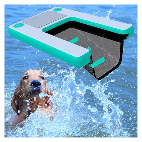 Aufblasbares Hundedock Schwimmende Plattform, Tragbare Schwimmende Große Hundewasserrampe Leiter Für Pools, rutschfeste Schwimmende Rampe Für Wasserpark/Resort, Haustiere Bis Zu 105kg(Green)