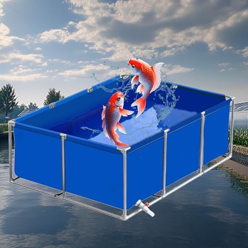 Außenlagertank Segeltuch Fischteich, PVC Teichfolie Fischteich aus Segeltuch mit Ständer,Gartenbewässerungsreservoir,Schildkröten-Teich Mit Ablassventil, Fischzucht, Blue 3×1.5×0.6m(9.8×4.9×1.9ft)