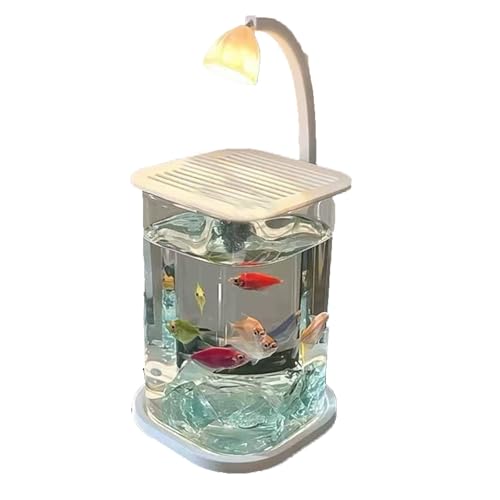 Ayizhiniu Aquarium Kampffische spezielle ultraweiße kleine Faule Glastank Wohnzimmer kreative Desktop-Ornamente High-End-Zierlampe