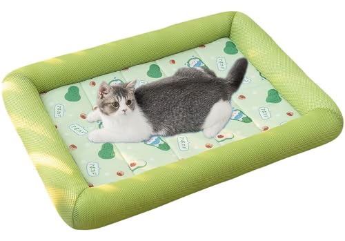 BANTASE Haustier-Kühlmatte Aus Eisseide for Hunde Und Katzen, Tragbar Und Waschbar for Den Sommer(Grün b,XL)