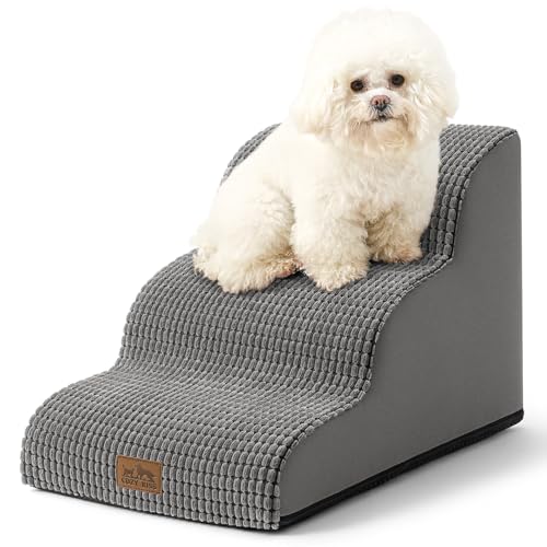 COZY KISS Hundetreppe für Kleine Hunde, Haustiertreppe für Couch aus Hochdichtem Schwamm, Hunde Treppe Hunderampe mit Waschbarem Bezug und Rutschfestem Boden (Hellgrau, 3 Stufen (40x57x40cm), 3)