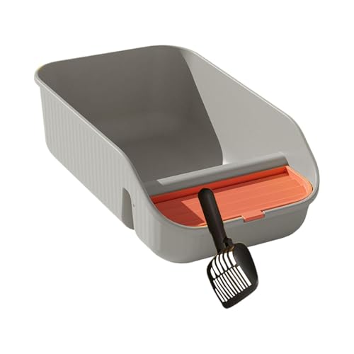 Dickly Katzentoilette für Hauskatzen Katzentoilette mit hohen Seitenwänden, große Bettpfanne mit Schaufel für kleine und mittelgroße Tiere, Kaninchen, Grau