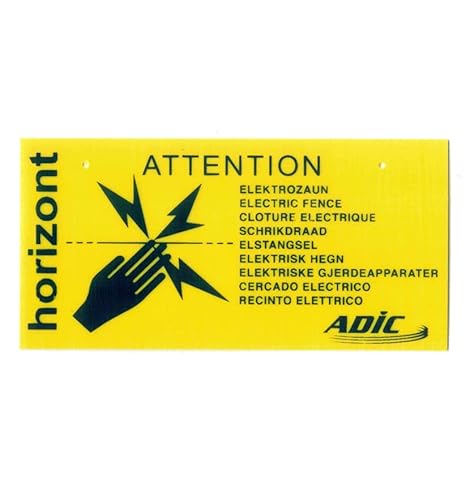 Maße: 20 x 10 cm internationale Ausführung mit 9 Sprachen mit vorgestanzten Löchern zum befestigen kann an Weidezaunband, -Litze & Seil befestigt werden Lieferumfang: 5x internationales Warnschild Elektrozaun