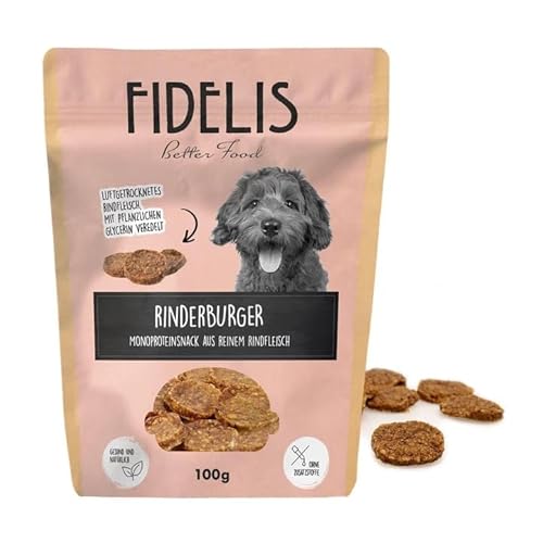 Fidelis - Rinderburger Häppchen für Hunde 100g - Luftgetrocknete Hunde Leckerlis aus 100% natürlichen Rohstoffen