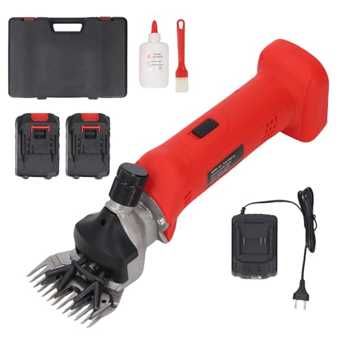 [Mühelose Scherung] Mit 21-V-Li-Ionen angetrieben, genießen Sie ein nahtloses Schneiden ohne Kabelströme. Bewegen Sie sich frei in jedem Arbeitsbereich, um Schafe mühelos zu scheren. [Verlängerte Akkulaufzeit] Ausgestattet mit zwei Batterien mit hoher Kapazität, sodass mehrere Haarschnitte ohne ständige Ladung ermöglicht werden. Ideal für groß angelegte Scheroperationen. [Einfacher Betrieb] Einfacher Ein-Klick-Switch zur einfachen Verwendung. Der ergonomische Gummigriff reduziert die Handmüdigkeit während langer Gebrauchszeiten und macht die Pflegeaufgaben angenehmer. [Präzisionstrimmen] Abnehmbare Klingen ermöglichen einen einfachen Austausch und Schleifen und gewährleisten genaue Schnitte für Pferde und Schafe. Kontrollieren Sie mühelos die Schnitttiefe. [Starke Leistung] bürstenlose Motoren bieten mühelos dicke Wolle eine hervorragende Leistung. Genießen Sie mit diesem robusten und tragbaren Pflegekit eine effiziente und langlebige Leistung.
