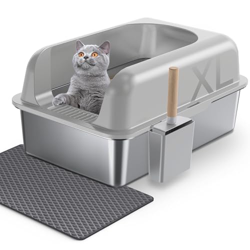Gimars XL Katzenklo Edelstahl, Große Katzentoilette aus Metall 20L mit Streuschaufel & Matte, Edelstahl Katzenklo für mittelgroße & große Katzen