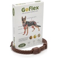 Das Goflex Hüft- und Gelenk-Bewegungshalsband ist eine neuartige, patentierte Control Freigabe-Technologie. Das Halsband fungiert als Behälter für die Wirkstoffe und gewährleistet durch den Kontakt mit dem Körper des Tieres eine konstante Dosierung über einen Zeitraum von 30 Tagen. Das Hüft- und Gelenkhalsband enthält eine leistungsstarke Mischung aus Glucasamin, Chondroitinsulfat, MSM, Curcumin, Weidenrinde und Bromelain. Das Goflex Halsband liefert die Inhaltsstoffe, die langsam freigesetzt und absorbiert werden, um die Gelenke 24/7 zu unterstützen. Einer von fünf Hunden hat Gelenkprobleme im Laufe seines Lebens, was zu Schmerzen und möglichen Mobilitätsproblemen führt. Das Halsband besteht aus Polyethylen und ist wasserbeständig. Es bietet eine lang anhaltende Wirkung - bis zu 30 Tage wirksam. Erhältlich in verschiedenen Größen: Kleine Hunde (Halsband Länge 39 cm) - bis 8 kg Körpergewicht Große Hunde (Halsband Länge 69 cm) - ab 8 kg Körpergewicht Wofür ist GoFlex nützlich? Die Gelenke werden durch den Gelenkknorpel geschützt, der als Stoßdämpfer fungiert. Bei Gelenkbeschwerden funktioniert dieser Knorpel nicht mehr richtig und schützt die Gelenke weniger effektiv, was zu Steifheit, Schmerzen und eingeschränkter Beweglichkeit führt. GoFlex Collar enthält eine wirksame Kombination aus Glucosamin/Chondroitin Sulfat und MSM, die im Körper des Tieres natürlich vorkommen und wichtig sind für die Erhaltung gesunder Gelenke. Glucosamin/Chondroitinsulfat sind das am häufigsten verwendete Ergänzungsmittel bei Osteoarthritis-Fällen Eine Studie zeigt, dass Goflex Collar wirksam ist für: Linderung von Gelenkbeschwerden & Steifheit Arthritis Rheumatoide Arithritis Schmerzlinderung Gelenkentzündung Muskelkater