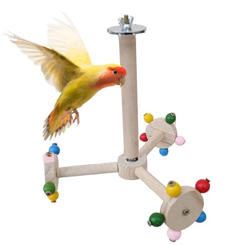 Spiegelbird Stangen, Wooden Parakeet Stand mit Swing, 5,51 x 4,72 x 3,54 Zoll, lustiges Spielzeug für kleine Parrots, Budgies, Cockatiels, Lovebirds Macaws Käfigzubehör