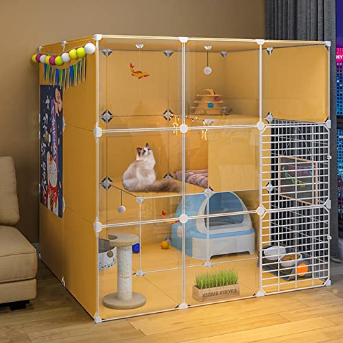 Katzenkäfig, Katzen-Playpen-Gehäuse Panorama Cat Villa abtrennbarer Metalldraht Innentoor DIY Große Übungsstelle ideal für 1-3 Katzen, Gelb (Größe: 105 * 135 * 105 cm) FANDIAO