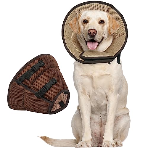 Kuoser Halskrause Hund, Bequem Leckschutz Hund,Schutzmaßnahmen Schutzkragen Hund, Einstellbar Hundekragen, Hunde Halskrause Leckschutz für Hunde, Vorbeugung von Biss- und Leckwunden,Braun XL