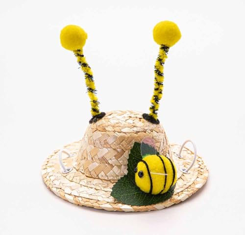 feiling Strohhut für Haustiere Sonnenhut für Katzen und Kleine Hunde Welpen Sonnenschutz Strand Mütze Urlaub Zubehör Haustier Party-Kostüm (G, S: Diameter 11cm)