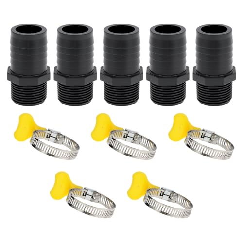 Hihaha Kunststoff-Schlauchstutzen 1,3" 1/2" BSPT Männliches Gewinde Gerader Rohrverbinder mit 5 Schellen 5 Stück