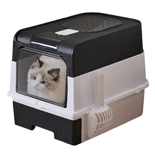 Katzentoilette – Katzentoilette mit Deckel | Geschlossene Kapuze Sieben Faltbares leichtes Gehäuse mit Schaufel Mülleimer Zubehör für den Innenbereich