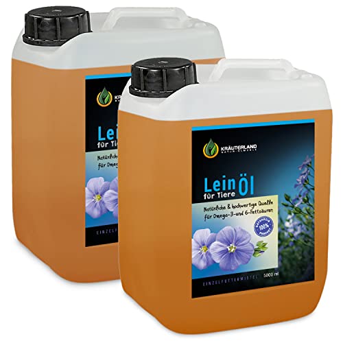 Kräuterland Leinöl für Pferde & Hunde 10L, 2X 5 Liter Kanister - Leinsamenöl, kaltgepresst aus erster Pressung direkt vom Hersteller in Premium Qualität