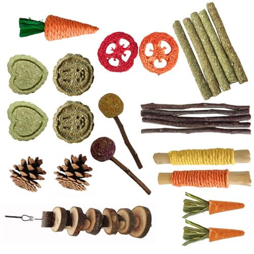 LfrXtra Hamster-Kauspielzeug, natürliches Gras, Kuchen, Backenzähne Übung für Chinchillas, Kaustäbe, Schleifstäbe für kleine Haustiere