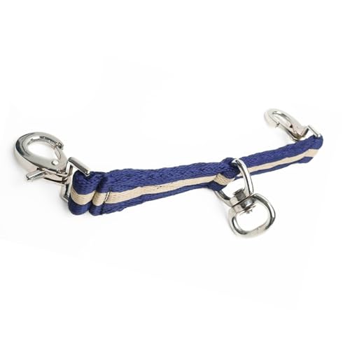 Longierbrille Pferd mit Karabiner - ideal für die Longe für gleichmäßiges Longieren, Gymnastizieren (Dunkelblau Creme)