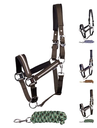 NETPROSHOP Halfterset Valli - Halfter 2-Fach Verstellbar und 2m Führstrick Shetty bis Full, Groesse:Pony, Farbe:Athen