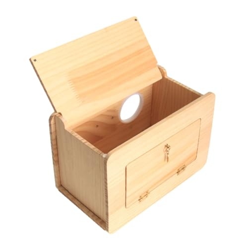 Nisthaus aus Holz mit einem kleinen Fenster, das jeden Moment einfängt. Diese Brutbox erhält Haltbarkeit und hervorragende Belüftung für Ihren Vogelkomfort. Bieten Sie einen Komfort für viele Vogelarten. Für den Einsatz in Häusern, Tierhandlungen, Zuchteinrichtungen und Forschungseinrichtungen, auch als pädagogisches Werkzeug und Ausstellungsstück. Schöne Dekoration für Ihren Vogelkäfig.