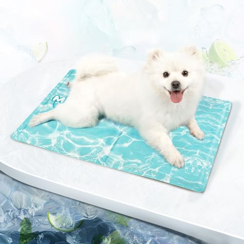 EFFEKTIVE WÄRMEENTZIEHUNG - Kein Klagen mehr über die Hitzewelle! Diese Kühlmatte für Hunde sorgt für einen sofortigen Kühleffekt und zusätzliche Entspannung, indem sie die Körperwärme schnell aufnimmt und abgibt. Kein Wasser, Strom oder Kühlung erforderlich! LANGLEBIGE KÜHLUNG - Das ungiftige Kühlgel im Inneren der kühlende Hundematte ist 5–10 Grad kühler als die Raumtemperatur und schützt Ihre Haustiere bis zu drei Stunden vor Überhitzung. Nach nur 15–20 Minuten Nichtgebrauch wird die im Gel eingeschlossene Wärme automatisch freigesetzt, so dass sich Ihr Haustier wieder abkühlen kann. STANZFEST UND WASSERDICHT - Dank seiner starken 300D-Oxford-Bezug und einer PVC-Innenschicht ist diese Kühlkissen pfotenfreundlich, pannensicher und wasserdicht. Der Rand ist zudem verstärkt, um ein Auslaufen zu verhindern, was die Haltbarkeit dieser Matte für Haustiere verbessert. TRAGBAR UND VIELSEITIG - Das wendbare selbstkühlende Hundekühlmatte ist komplett faltbar für den täglichen Transport oder auf Reisen. Verwenden Sie es als Kissen, Bett oder sogar als kühles Matte für den Computer. Ideal für den Boden, das Sofa, das Haustierbett, die Hundebox, den Zwinger oder draußen im Schatten. TIPPS VOR DER VERWENDUNG - Die Kühldecke für Welpen ist zwar kratzfest, aber nicht kaubeständig. Schneiden Sie die Nägel Ihres Haustiers vor der Verwendung ab, um die Lebensdauer zu verlängern. Auf alle Produkte gewähren wir 1 Jahr Garantie. Wenn Ihr Haustier versehentlich das Kühlbett beschädigt, wenden Sie sich einfach an uns, senden Sie ein Bild und wir senden Ihnen umgehend eine neue als kostenlosen Ersatz.