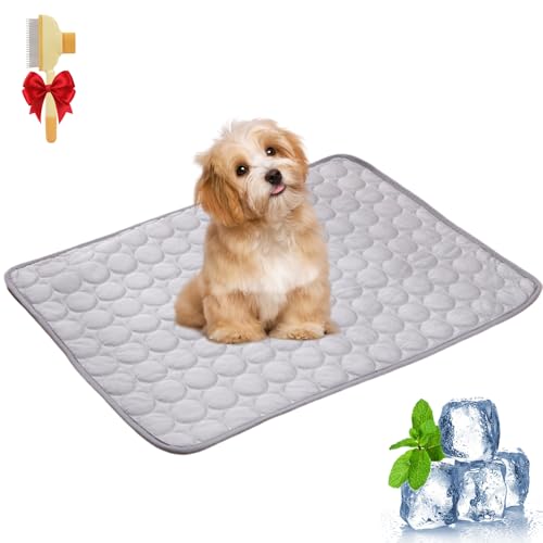 Pfotenfrost Matte, Pfotenfrost Matte für Katzen, Eiskühler Stoff, Schützt Deinen Hund Vor Überhitzung, für Gartenbett, Haus und Autositz (Grau, L(100 * 70cm))