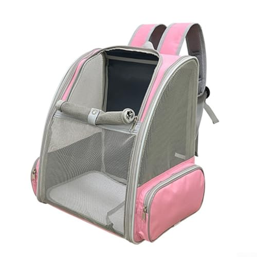 Polyester Katzentragerrucksack für kleine Haustiere, entworfen zum Wandern, Camping und Reisen, atmungsaktiv mit seitlichen Aufbewahrungstaschen (Rosa)