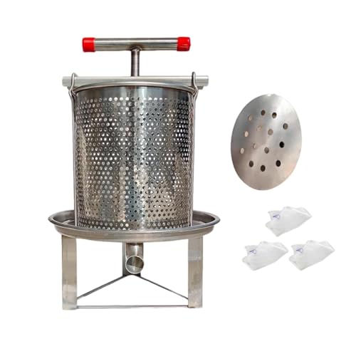 【Packliste】: 1 manuelles Pressfass, Filtersieb und Auffangwanne 【Benutzerfreundliches Design】: Die Gemüsepresse mit einem T-förmigen, drehbaren Griff ausgestattet, der die Aufbewahrung und Handhabung großer Mengen an Lebensmitteln erleichtert. 【Vielseitig einsetzbar】: Dieses manuelle Pressfass nicht nur zum Extrahieren von Honig, sondern auch zum von Obst und Gemüse zur Herstellung von Wein oder Saft geeignet und somit ein Begleiter für Haushalte, Restaurants, Bauernhöfe und Lebensmittelfabriken gleichermaßen 【Große Kapazität und hohe Effizienz】: Honigpresse- mit großer Kapazität und einzigartiger Wabenwandstruktur ermöglicht eine 360-Grad-Honigproduktion und verbessert so die Produktionseffizienz erheblich 【Material】: Diese Honigpresse aus rostfreiem gefertigt und verfügt über Stahlträger, die sie machen und eine Lebensdauer haben. Die Basis wird durch drei Stützbeine aus dickeren, runden Stahldreiecken stabilisiert, was für mehr Stabilität während des Gebrauchs sorgt.