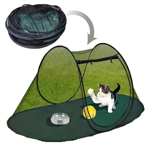 【Premium Langlebiges Material】Der Boden des faltbaren Haustierzeltes besteht aus hochwertigem Oxford-Gewebe, das wasserdicht und atmungsaktiv ist. Es verfügt auch über atmungsaktive Mesh-Einsätze, die eine hervorragende Belüftung bieten und gleichzeitig Ihre Haustiere sicher in der Nähe halten, so dass Sie Ihre Katze beim Spielen drinnen oder draußen genießen können! VIELSEITIGE VERWENDUNG - Geeignet für mehrere Haustiere, einschließlich Katzen, Hunde, Kätzchen, Welpen und Kaninchen, bietet es ihnen einen sicheren und bequemen Platz. Perfekt für den Innen- und Außenbereich, spendet Schatten für Outdoor-Aktivitäten und schützt Haustiere vor Mücken und anderen Sommerschädlingen. Es ist ideal für Haustiere zum Ausruhen und Nickerchen auf Balkonen, Terrassen, Veranden und Höfen. Praktischer Aufbau: schnelle und einfache Montage ohne Werkzeug. Einfach das Zelt aufklappen, damit es automatisch aufspringt. Öffnen Sie es zum Aufstellen und falten Sie es flach für einfache Lagerung, wenn Sie fertig sind. 【Tragbares Design】Enthält eine stabile Bodenmatte und einen geräumigen Innenraum mit Ein- und Ausstiegspunkten für einfachen Zugang. Pop-Up-Haustierzelt, das sich kompakt zusammenklappen lässt für einfache Lagerung und Transport. Kein Werkzeug erforderlich. 【Ideale Wahl】Der Hauptkörper besteht aus Netzgewebe, das Belüftung ermöglicht und Haustieren einen 360-Grad-Blick auf ihre Umgebung bietet. Das Netzgewebe ist robust genug, um intensiven Spielen standzuhalten. Dieses Katzenzelt ist eine großartige Alternative zu Katzenkäfigen, damit Ihr Haustier in Sichtweite bleibt, während es die frische Luft im Freien genießt.