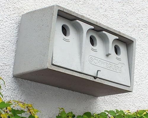 Anbringung: Häuser aller Art im Siedlungsbereich, industrielle und "landwirtschaftliche Gebäude, Scheunen u.v.m. Anbringungshöhe: Ab 2 m aufwärts. Brutraum-Innenmaße der drei Brutkammern: Jeweils B 10,5 x H 16 x T ca. 15 cm. Material: SCHWEGLER-Holzbeton Außenmaße: B 43 x H 24,5 x T 20 cm. Gewicht: ca. 15 kg.