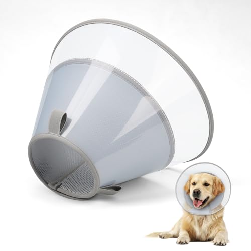 Supet Hundekegelhalsband mit weichem Polster, transparentes Elizabeth-Genesungshalsband für Hunde, um das Lecken nach Operationen, Kastration und Verletzungen zu stoppen(Grey-XL)