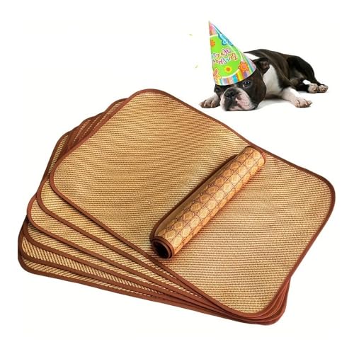 UYFRD Haustier-Hundematte, Kühlmatte, Haustier-Bodenmatte, Sommermatte, Katzen-Hunde-Schlafmatte, Rattan-Matte (40 cm rund)