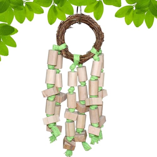 Spaß für Vögel: Lassen Sie Ihren Begleiter mehr Unterhaltung mit anregenden Spielzeugen haben, die seine Aufmerksamkeit erregen, reduziert die Einsamkeit und fördert das Erkunden und Spielen. Verbessern Sie die Mundhygiene: Ermutigen Sie Vögel zum Kauen und halten Sie ihre Schnabel gesund mit diesem lustigen Spielzeug, das Unterhaltung und Vorteile für die Zahnreinigung bietet. Hilft dabei, die Zähne gesund zu halten und gleichzeitig ihr instinktives Kaubedürfnis zu steigern. Hochwertiges Material: Hergestellt aus hochwertigem Holz, sorgt dieses Papageienspielzeug für ein dauerhaftes und verschleißfestes Spielen, das frei von schädlichen Substanzen für die Gesundheit Ihres Haustieres ist. Bequem zum Aufhängen: Mit einem eleganten Metallringdesign können Sittichspielzeug leicht im Käfig Ihres Hauses, an einem oder an jeder gewünschten Stelle aufgehängt werden. Geben Sie Ihrem gefiederten Freund ein reibungsloses Spielerlebnis! Breites Anwendungsspektrum: Verwöhnen Sie Ihren gefiederten Begleiter mit diesem vielseitigen Papageien-Spielzeug, das entwickelt wurde, um einer Vielzahl von Vögeln mehr Unterhaltung zu bieten, einschließlich Konuren, Nymphensittiche, Sittiche, Wellensittiche und Papageien.