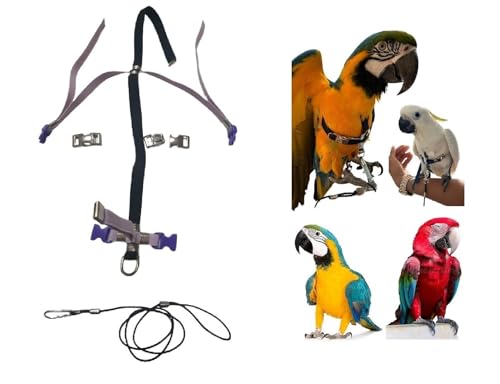 Geschirre Made in Italy handgefertigt aus hochwertigem Gummiband, viel bequemer für den Papagei, da alles elastisch von hoher Qualität