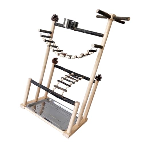 Vogel-Spielständer aus Holz mit herausnehmbarem Tablett, Futterbecher, Metallschrauben, Kletterleiter für Papageienanreicherung