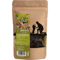 Entenfleisch Snack-Würfel mit 99 % Fleisch & natürlichem Lachsöl Natürlicher Monoproteinsnack aus reinem Entenfleisch in Bröckchen-Form "Made in Germany". Keine Konservierungsstoffe, keine Füllstoffe, keine künstlichen Farbstoffe, nur das reine Fleisch und eine Extraportion Lachsöl. Wildborn Super Bites sind eine Delikatesse aus hochwertigem, schonend luftgetrocknetem Entenfleisch. Garantiert ohne Zusätze wie Mais, Weizen, Soja, Farbstoffe, Konservierungsstoffe, Fleischmehle. In Deutschland hergestellt, mit der Extraportion Lachsöl. Unsere Naturkausnacks bestehen zu 99 % aus Entenfleisch & 1 % Lachsöl ohne jegliche Zusätze. Die fleischigen Wildborn Bites reinigen die Zähne, stärken das Gebiss und sind vor allem für jeden Hund unwiderstehlich lecker. Extraportion natürliches Lachsöl Die Extraportion Lachsöl ist das zusätzliche Highlight für Ihren Hund. Das rein natürliche Öl enthält wertvolle Vitamine , Mineralien und vor allem gesunde Fette. Besonders die essenziellen Omega-3-Fettsäuren sind für Hunde unabdingbar. Leider können diese lebensnotwendigen Fettsäuren nicht vom Organismus des Hundes selbst hergestellt werden und müssen mit der Nahrung aufgenommen werden. Natürliches Lachsöl beeinflusst das Immunsystem und den Stoffwechsel extrem positiv. Das Lachsöl in unseren Wildborn Bites kann Gesundheitsstörungen somit vorbeugen und die Knochen-, Haut- und Fellgesundheit Ihres Hundes natürlich unterstützen. WILDBORN NATURAL BITES HIGHLIGHTS MONOPROTEIN: Luftgetrockneter, naturbelassener Hundesnack aus nur einer Fleischsorte. NATUR PUR: Eine Artgerechte, Natur- und Beutenahe Hundebelohnung. Unser wichtigster Lieferant, die Natur, liefert uns alle wichtigen Bestandteile. GESUND FÜTTERN: Der Trainingssnack enthält viel Fleisch, wenig Fett und keinen zugesetzten Zucker. Versorgen Sie Ihren Liebling unkompliziert mit hochwertigen Nährstoffen. FÜR ALLE HUNDE: Unsere Wildborn Bites werden mit Liebe unter hohen Qualitätsstandards produziert. Dank der soften Textur sind diese Snacks auch bestens für Welpen und Senioren geeignet. ACHTUNG SUCHTFAKTOR: Aufgrund des hohen Fleischgehalts wird Ihr Hund unsere Wildborn Bites lieben und weicht Ihnen nicht mehr von der Seite. ABSOLUTES TIERWOHL: Nur das Beste für Ihren Hund. Aus diesem Grund verzichten wir bewusst auf: Farb- und Lockstoffe, Zucker, Gluten, Getreide und Soja. Zusammensetzung: 99 % Ente, 1 % Lachsöl Analytische Bestandteile: Protein 51,0 %, Fettgehalt 19,6 %, Rohasche 13 %, Rohfaser 1,8 %, Feuchtigkeit 9,6 % Fütterungsempfehlung: Belohnungssnack. Bitte stellen Sie Ihrem Vierbeiner immer ausreichend frisches Wasser zur Verfügung. Hinweis: Bitte kühl und trocken lagern.