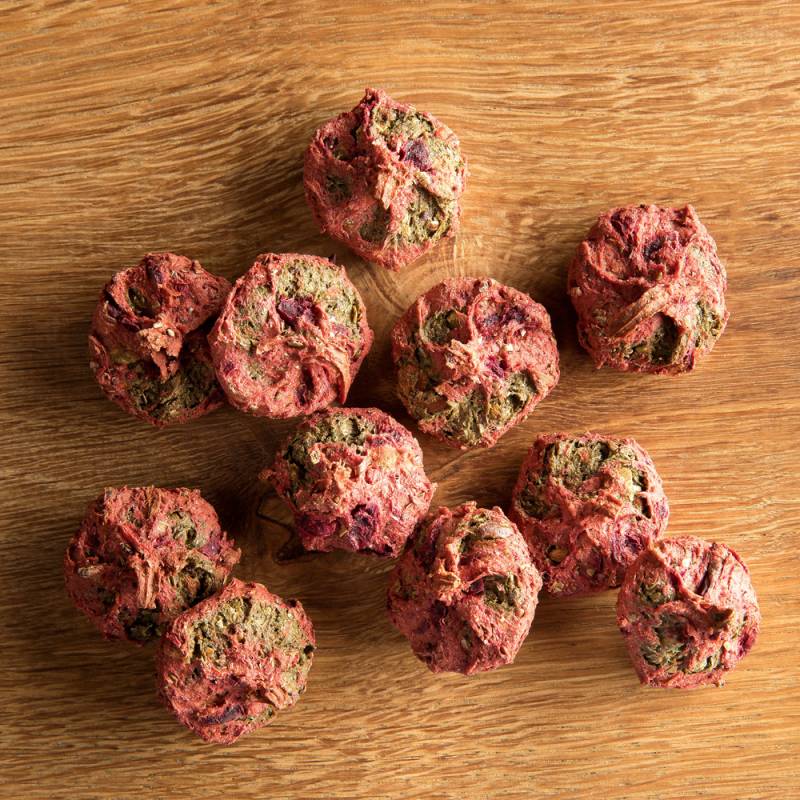 alsa-nature INSECTUM Gemüse-Pastete, 2 x 250 g, Durchmesser: ca. 3 cm - Dank der Basis von Insekten als alleinige Proteinquelle sind diese schmackhaften Knusper-Kugeln eine ideale Wahl für sehr sensible oder allergische Hunde. Der gesunde Gemüse-Mix beinhaltet unter anderem Karotte, rote Bete, Süßkartoffel, Erbsen, Spinat sowie Spirulina und spendet dadurch wichtige Vitamine. ▶ alsa-nature INSECTUM entdecken Zusammensetzung: Kartoffelflocken 37,4%, Insekten (Schwarze Soldatenfliege) 20%, Karotten getrocknet 9,5%, frische Karotten 7%, Rote Bete getrocknet 5%, Pastinake getrocknet 4,5%, Leinsaatmehl 4%, Süßkartoffel getrocknet 3%, Kürbis getrocknet 3%, frische Erbsen 2,5%, frischer Spinat 2%, Kartoffelmehl 1%, Aloe Vera 0,5%, feine Gemüsebrühe 0,35%, Spirulina 0,25% Analytische Bestandteile: Rohprotein 8%, Fettgehalt 5%, Rohfaser 7%, Rohasche 6% Futtermitteltyp: Ergänzungsfuttermittel